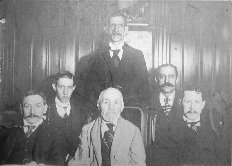 Also in the picture are his sons John C. Miller and Frederick C. Miller seated next to him. In the back row, left to right) there are Ernest Raymond Nicklas (my Grandfather), Edgar Rudolph Nicklas (my Great Grandfather) and ????.