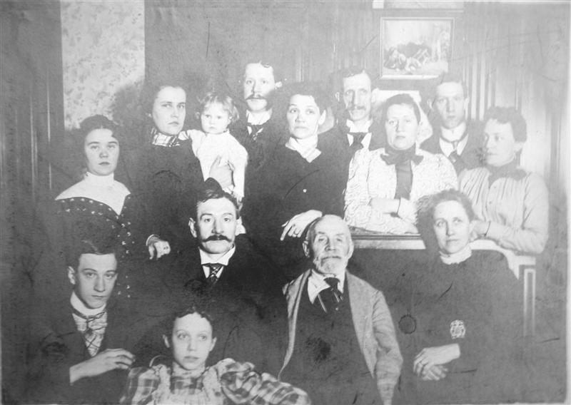 The back row: Unknown female; Unknown female; Unknown female; Unknown male; Unknown female; Edgar Rudolph Nicklas; Unknown female; Ernest Raymond Nicklas; Unknown female