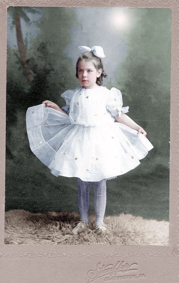 This is a photograph of Anna Marguerite Nicklas, born 18 March 1898. She appears to be about 8 years old, so I''ve estimated the date of the photograph to be about 1906. She is my First Cousin Twice Removed. Her father was John Michael Nicklas, brother of my Great Grandfather Edgar Rudolph Nicklas.