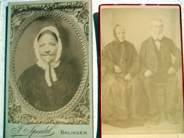 These pictures came to me from Ken Fisher, and were copied by him at Doris (Morton) Kuzman's house, in the summer of 2000. Balingen is about 5 miles east of Rosenfeld, where my Müllers came from. Perhaps she (on the left) was a part of that family, or married into it.