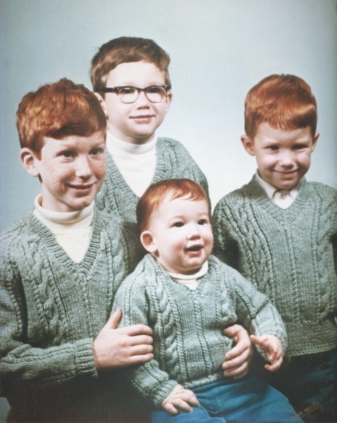 The four Hills brothers, to which my daughters are married to two of them (Dan & Jeff). Left to right, they are: Daniel Robert Hills (age 8), Timothy Allen Hills (age 6 1/2), Jeffrey Armand Hills (seated - age 10 months), and Michael John Hills (age 4 1/4 years).